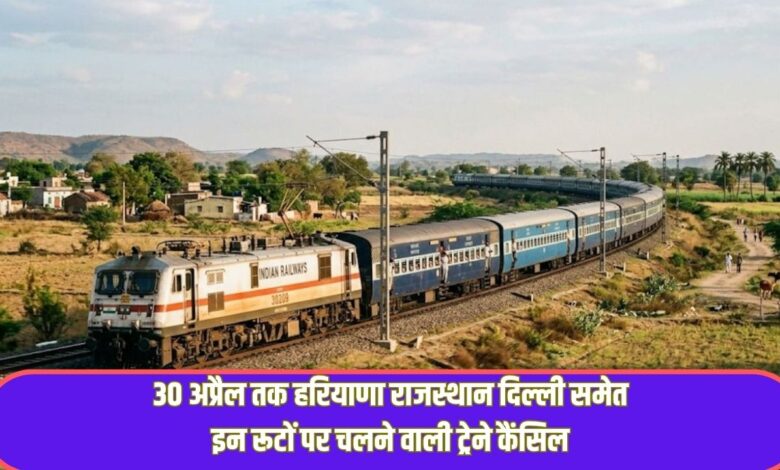 हरियाणा, राजस्थान समेत कई रुटों की ट्रेने 30 अप्रैल तक कैंसिल, सफर से पहले देखें लिस्ट